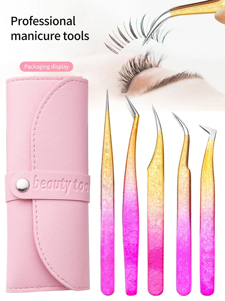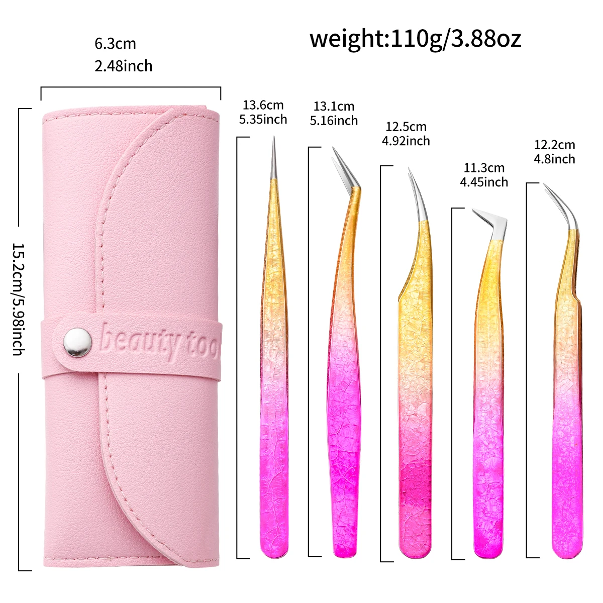 5Pcs Eyelash Tweezers Set, Precision Stainless Steel Tools for Lash Extensions