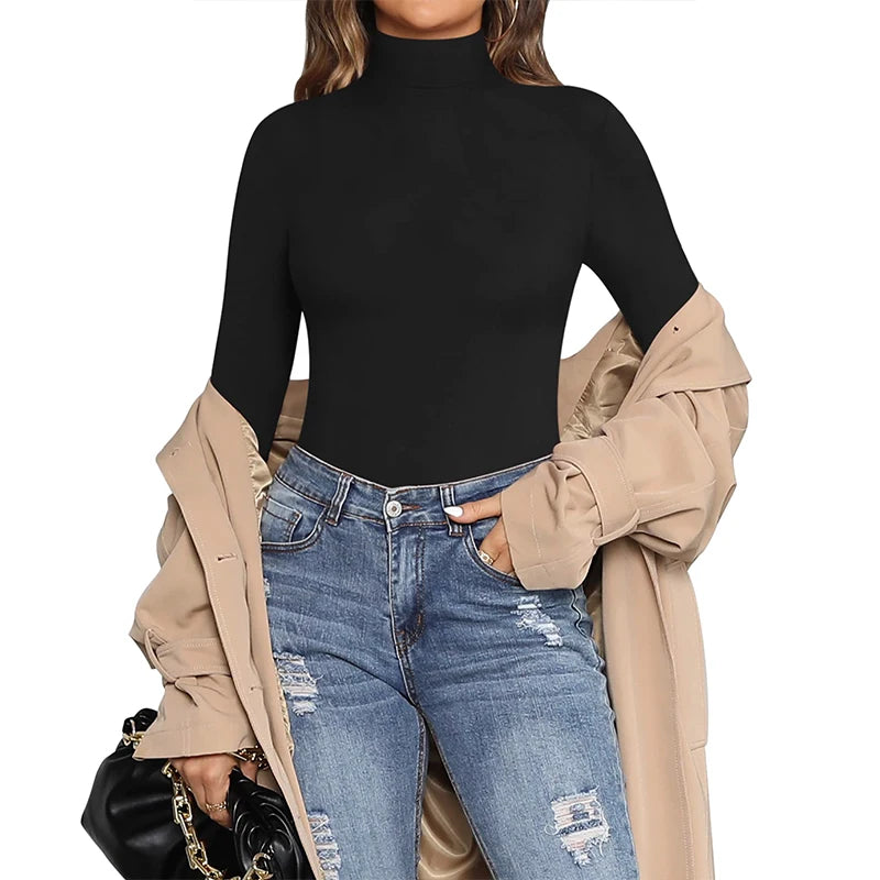 Women’s Stretchy Turtleneck Bodysuit, Long Sleeve Slim Fit Top