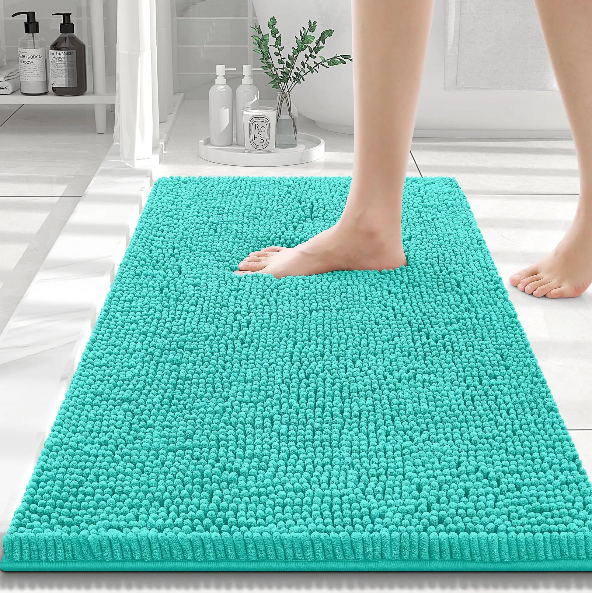 Olanly Chenille Bathroom Rug, Non-Slip, Soft & Machine Washable Mat with PVC Backing